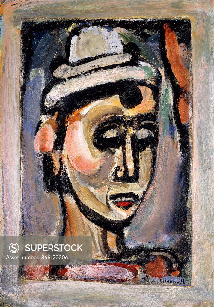 35 3/8 x 26 7/8 (89.8 x 68.2 cm) credit... By contrast, rouault's earliest clowns, such as the haunting head of a tragic clown (1904), illustrated the intrinsic sadness he saw in their lifestyle: By contrast, rouault's earliest clowns, such as the haunting head of a tragic clown (1904), illustrated the intrinsic sadness he saw in their lifestyle: